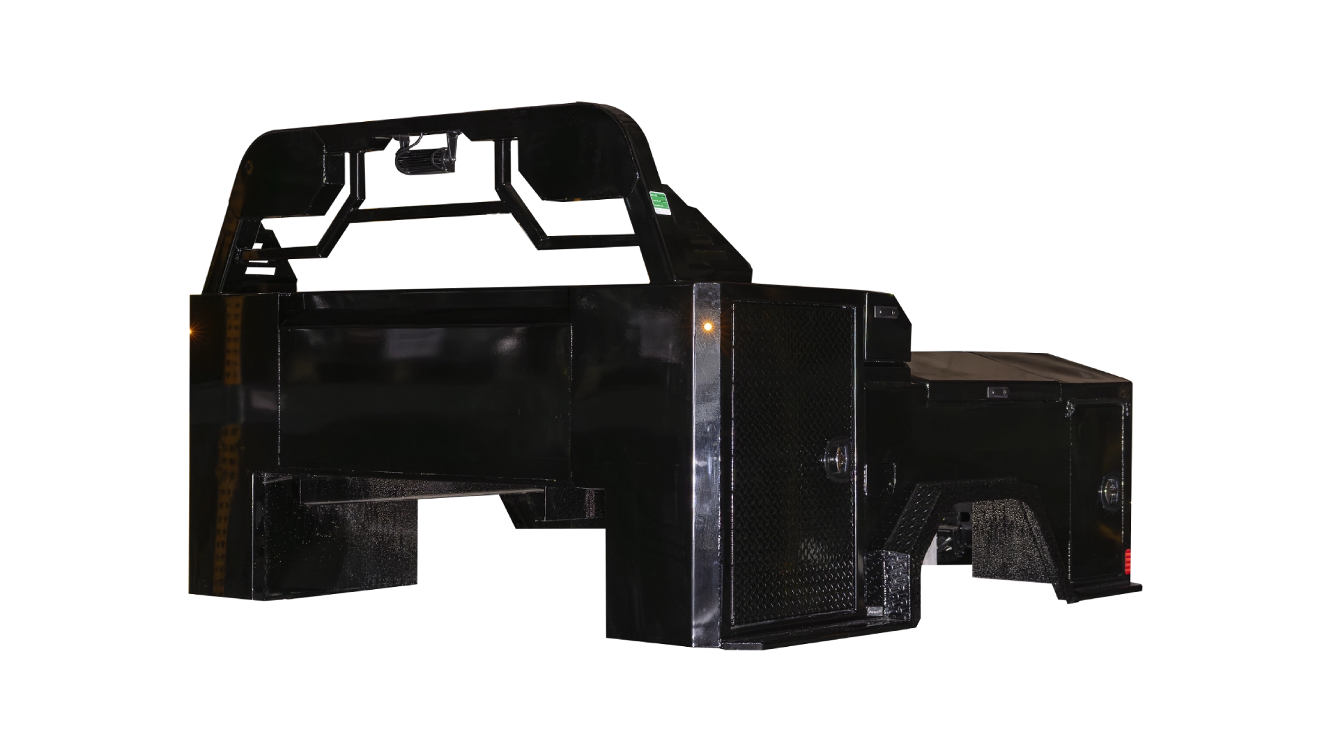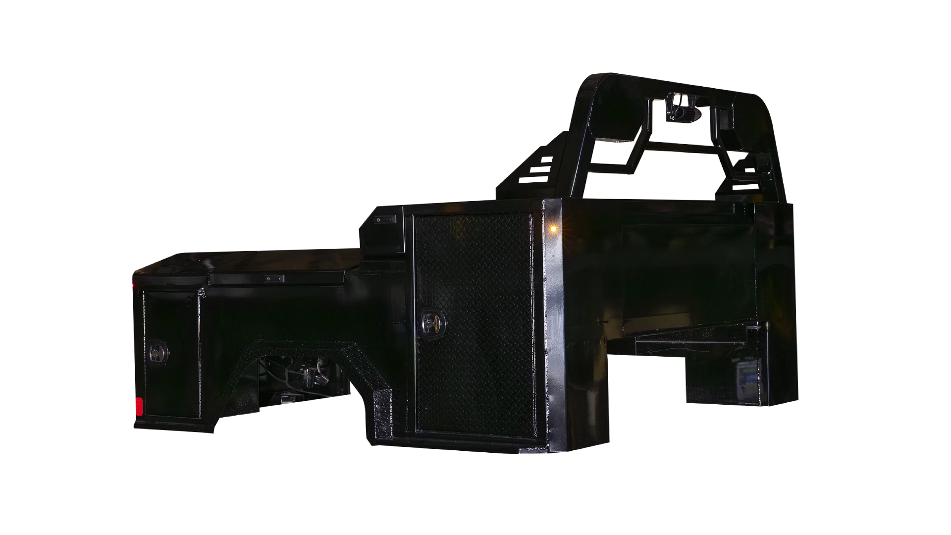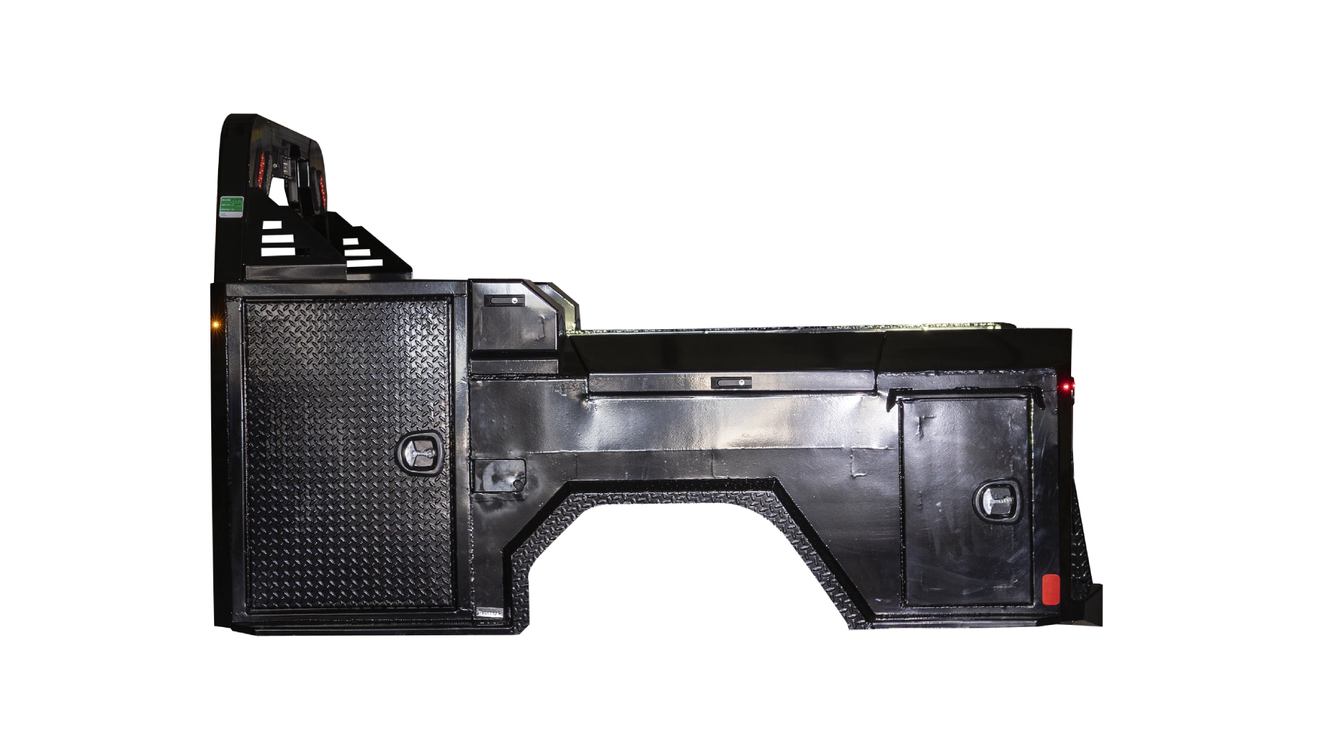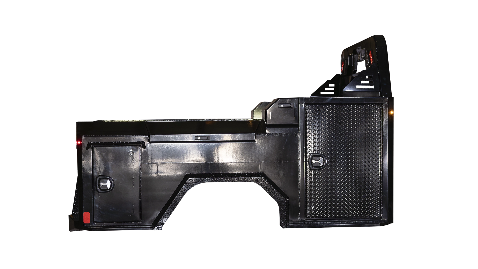 Combines durability and storage versatility with a strong diamond plate steel deck, multiple integrated toolboxes, and advanced LED lighting for reliable performance.